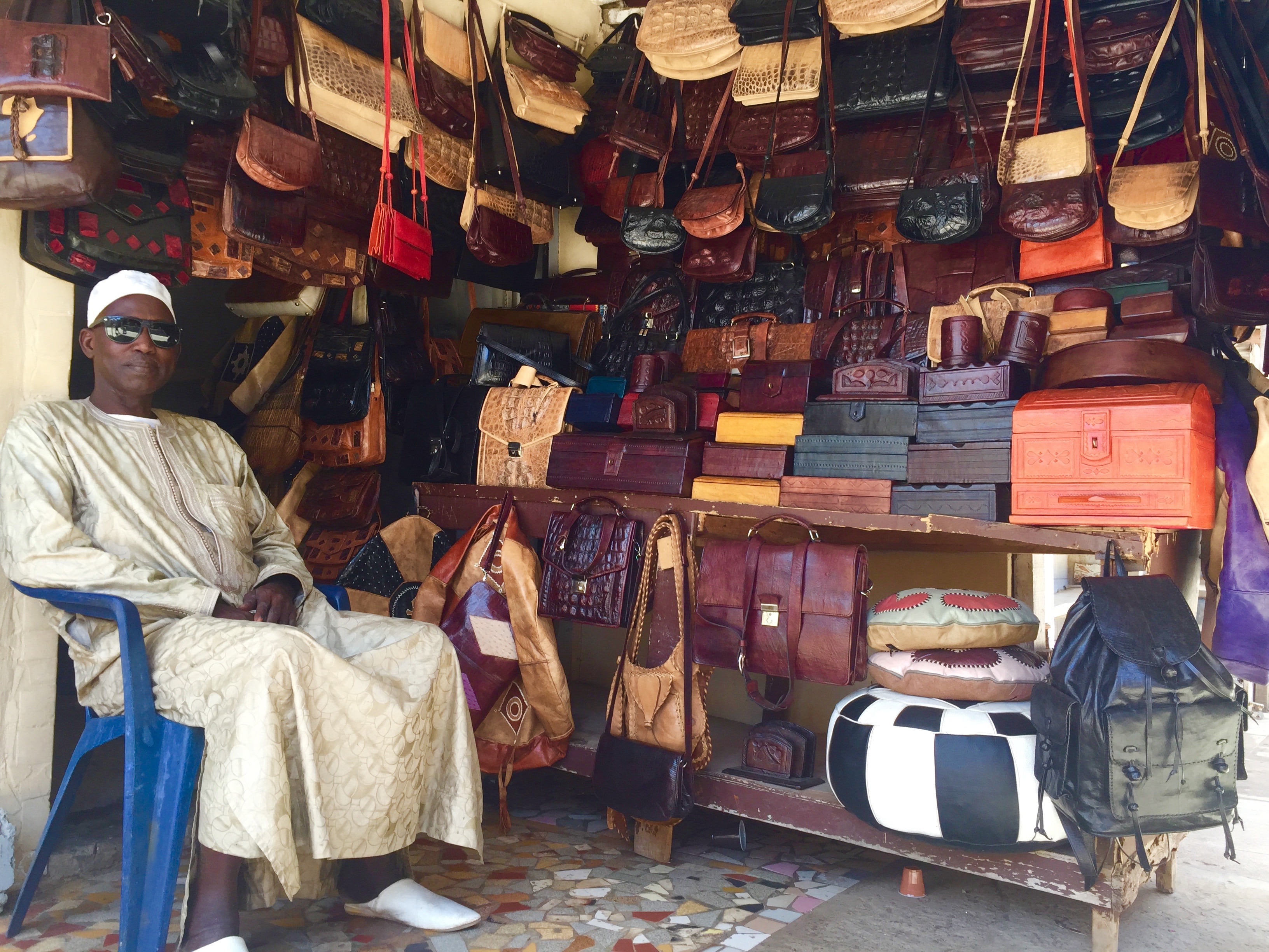 « Nio far! » L’expression en wolof qui signifie « on est ensemble », reflète à la perfection l’ambiance sur le marché artisanal de Soumbédioune. Tous les artisans se connaissent et s’entraident. « On est tous plus ou moins né ici. En tous les cas on a grandi sur le marché et notre savoir-faire se transmet de génération en génération », raconte Tom, jeune vendeur de tissus et bijoux en tout genre.